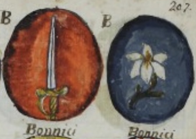 1. Nobile Giacomo Bonnici of Firenze, Italy, moved to Gozo in 1356., married to Selvagia Doria, with issue.
