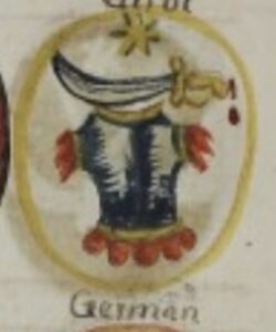 1.1.1.1.1. Gio Battista German, married (1) to Giovanna N, married (2) 1745 Valletta to Donna Antonia Minuta, with issue.