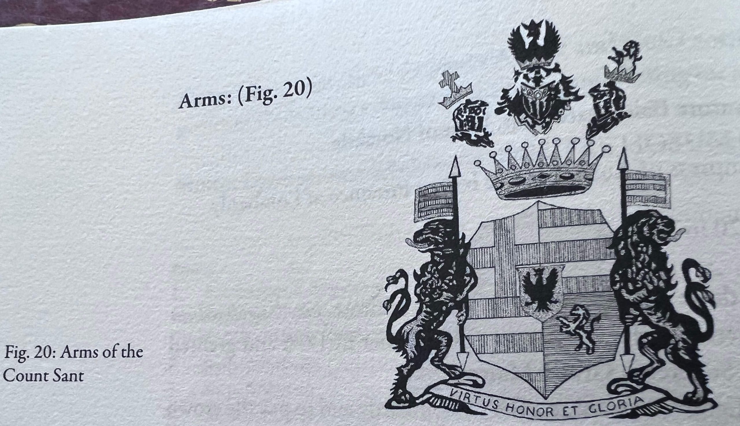 Salvatore Baldassare Sant was granted the title of Conte in virtue of a patent granted, on the 22nd December 1770, by the Empress Maria Theresa in the Italian Provinces annexed to the German Empire. In this grant, a condition is attached by which the grantee is required to purchase a fief in Lombardy,. The operative parts of the grant read thus:- (A) Quod cum ita sint, non difficiles aures praebuimus precibus tuis, Nobilis dilecte Nobis Don Balthassar Salvator de Sant, Nobilis Melitensis quibus licet ordine, in numerum Comitum nostrarum in Italia Provinciarum postulas referri, illisque deficientibus, Comitis titulum ad Primogenitum ex ultima foemina superstite nasciturum, hujusque posteris extendi (B) Teque una cumflio tuo primogenitor Joanni Francisco Salvatori, et ab hoc, eodem nascendi ordine, descendentibus virilis sexus ex legitimo thoro natis atque nascituris, in infinitum, Comitem ac Comites nostrarum in Italia Provinciarum facimus, nominamus, atque creamus…(C) Et quoniam in Longobaria nostra les obtinet, quae Comitis titulum, congrua eidem feudi posessione jubet fulciri, aequi bonique facimus, te prompto nobis obsecundandi studio ad laborare, ut feudum clientelie vinculo obstrictum, inditione nostra, primo quovis tempore adquira.…. (D) Addentes hanc gratiam speccialem, ut si aliquando stirpem masculinam familiae tuae extingui contingat, Comitis titulus et dignitas ad Primogenitum ex ultima foemina generic tui superstite natum vel nasciturum, qui gentis tuae cognomen assumit ejusque posteros modo antedicto, servatoque simper ordine primogeniali transeat. The Commissioners commented that they were not aware that the land referred to in the patent was actually acquired by the grantee, but stated that as this condition is not peremptorily laid down in the patent, they did not think that its non-performance invalidates the grant. See:- Correspondence and Report of the Commission appointed to enquire into the claims and grievances of the Maltese Nobility, May 1878, presented to both Houses of Parliament by Command of Her Majesty (C.-2033.) (See Report Paras. 216-217 AND Supplemental Report Part III) At Maltese Law this title of Conte (Sant) is only a foreign title and, as such, it can be considered for the purposes of precedence in Malta only if registration or Magistral recognition has been achieved in accordance with the rules of 1739 and 1795 as enacted by Grand Masters Despuig and Rohan. In this case, it appears that the 1770 title granted to Salvatore Baldassare Sant was in fact registered in the Cancelleria, and in the High Court of the Castellania. Although published sources refer to this title as Conte Sant it is clear that that is a misnomer as the title granted was of Conte and not Conte Sant. However, the accepted form is used here so as to distinguish it from other dignities enjoyed by the grantee’s family.