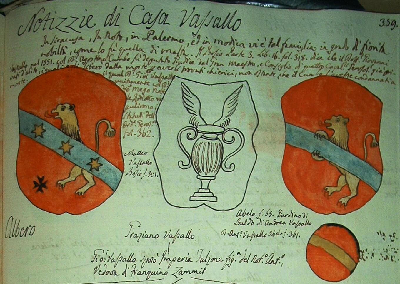 The Noble Family of Vassallo, described in 1647 by Abela as “una delle antiche famiglie di Malta”, which enjoyed nobility not only in Malta but also Siracusa, Noto, Palermo, Modica and Genova.