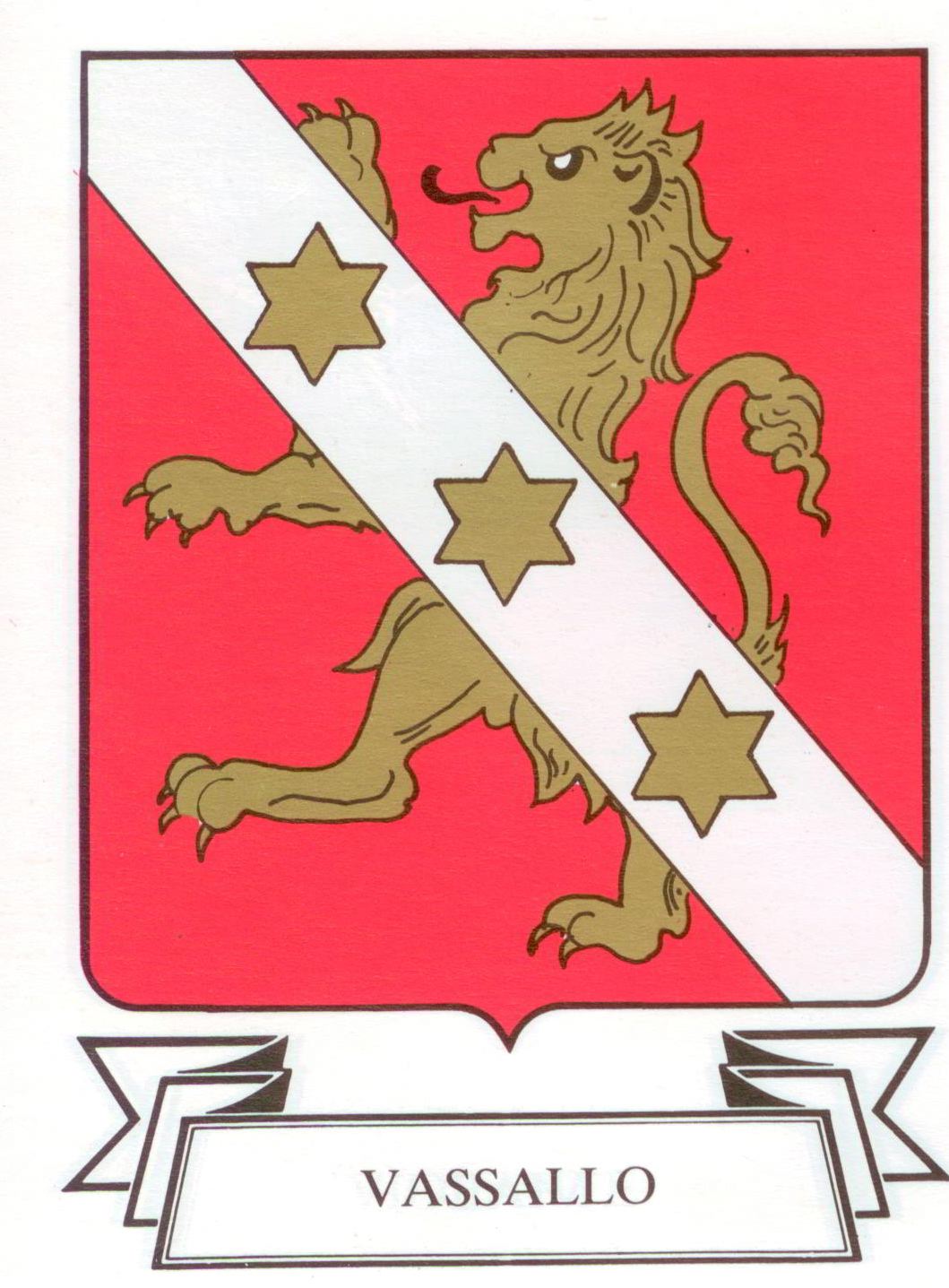 Additional note: In mainland Sicily and mainland Italy, the Vassallo family is also acknowledged as being descended from the Emperors of the East: “Una delle antiche e nobili famiglie della Sicilia, stando al Baronio, Mugnos, Inveges ed altri che la fan erivare dal celebre Michele Paleologo imperatore di Costantinopoli, secolo XIII. Si sa dallo stesso Baronio aver ella fatto due passaggi in Sicilia, primo in Noto sotto Federico II, ammessa a’ più onorevoli carichi della città, ove come dice Inveges divenne feudataria, estinta nel XV secolo; e poi in Palermo con Nicolo, uno dei tré fratelli che d’ordine del loro consanguineo Costantino Paleologo imperatore dalla Morea per l’Italia mossero, stabilendosi gli altri due cioè il Pietro in Ancona, ed il Tommaso in Roma, a condizione di dover mutare cognone di Paleologo in Vassallo, come da imperiale diploma 1429, sotto rè Alfonso in questa nostra cancelleria depositato. Dal citato Nicolo Vassallo’ adunque, che in compenso di militari servigi delle reali concessioni si ebbe, segnatamente quella di r. stendardiere 1439, ne venne una serie di distinti personaggi, tra’ quali notiamo: un Pietro razionale del regno e castellano ereditario di Mazzara 1479; un Andrea credenziere delle r. gabelle doganali di terra e di mare di Palermo; un Gaspare cavaliere gerosolimitano 1513; un Gregorio altro cavaliere morto combattendo nell’impresa di Rodi 1522; uno Stefano senatore di Palermo 1525-29-32; un 2° Nicolo castellano di Capizzi, segreto 1528, e barone ereditario dei feudi Risabea, Raffudi e Ratto del mastro nel territorio di Ragusa, investito 1544; un Giammatteo senatore di Palermo 1536; un Vincenzo capitandarme del regno, e tesoriere di Palermo morto 1630; altro Francesco capitandarme del regno ed uno dei cavalieri giostranti premiato 1601, come dall’ Auria; Ludovico, Tommaso, Antonino, Ignazio e Bartolomeo più volte senatori, se non che quest’ultimo meritossi dal decurionato un diploma di benemerito della patria nel 1821. La rappresenta in atto Giuseppe Vassallo-Paleologo e Santostefano, cavaliere degli ordini dei ss. Maurizio e Lazzaro e della Corona d’Italia. Arma: diviso; nel 1° d’azzurro con una croce d’oro, caricata nel capo dal monogramma costantiniano, ed accompagnato da due lune crescenti d’argento; nel 2° d’azzurro (concessione di rè Alfonso), con un leone, accompagnato in punta da due gigli, ed una sbarra attraversante, il tutto d’oro. La bordura d’oro, caricata dal motto in hoc signo vinces, intramezzato da quattro torri di nero, ciascuna sormontata da una bandiera d’argento, caricata da una croce rossa svolazzante a sinistra. Lo scudo in petto dell’aquila bicipite coronata d’oro nelle due teste, linguata di rosso, armata e beccata d’oro, al volo abbassato, sormontata dalla corona imperiale.” (See http://www.famiglia-nobile.com/default.asp )